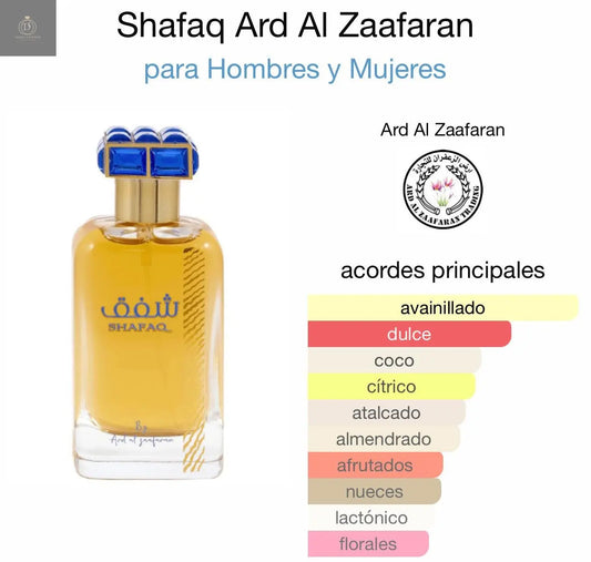 SHAFAQ Ard Al Zafaaran Lattafa 100mlPrecio habitual €26,00Precio habitualPrecio unitario / por€35,00Precio de oferta €26,00Oferta