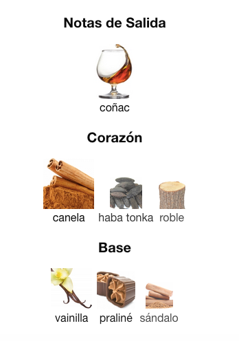 Las notas de salida están llenas de dulces tonos de haba tonka y nobles matices de madera de roble.