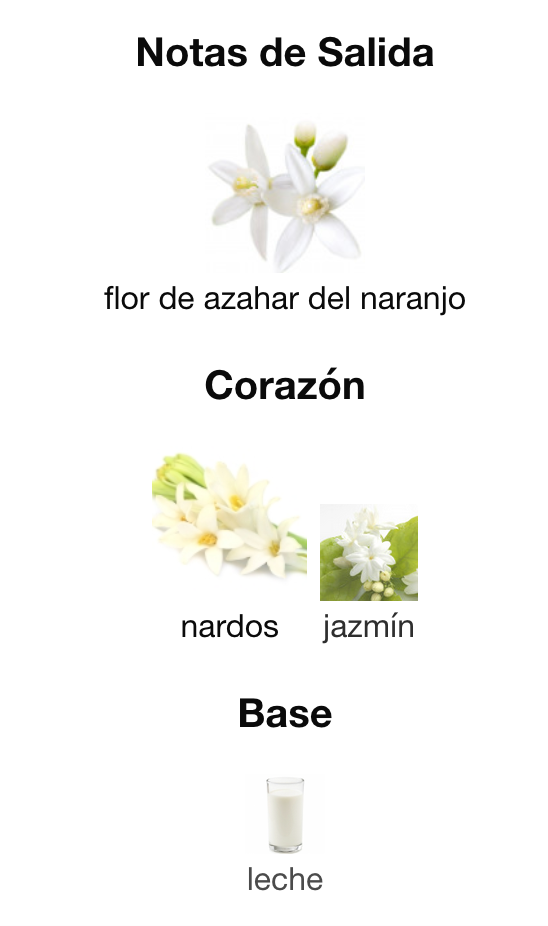 La salida es brillante y refrescante, con acordes de pera jugosa, grosella negra y bergamota, que aportan vitalidad desde el primer instante. En el corazón, florecen delicadas notas de jazmín, rosa y peonía, creando un equilibrio perfecto entre dulzura y elegancia. Finalmente, su fondo de vainilla cremosa, almizcle blanco y madera de cachemira deja una estela suave, envolvente y duradera.